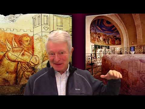 "Untie it and bring it here.” You can see in the background the painting that I presented to you before in the Franciscan chapel of Bethphage. But it is also interesting something you can observe now: a stone on which another painting can be seen better on the left. It is a stone that was placed in this chapel by the Crusaders and painted, on this stone, the colt and the two disciples who carry the colt to Jesus. And what is interesting is that the Crusaders have placed this stone inside the chapel, saying that Jesus climbed on this stone to ride the colt. Interestingly, the Crusaders put this stone because they had horses. To mount a horse, you can climb on this stone, but to ride a donkey, you do not need to, for if one climbs on this stone, he must descend to mount the colt. It's just a curious detail.